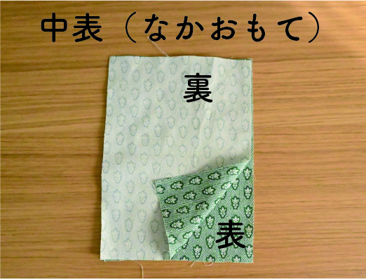→2枚の布を合わせるときに、布のおもてとおもてを内側にして合わせることを、「中表(なかおもて)」と言います。